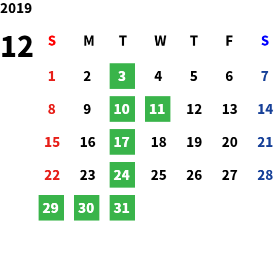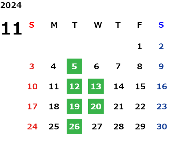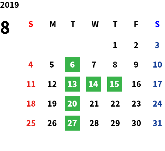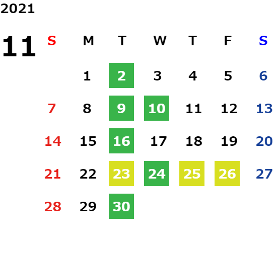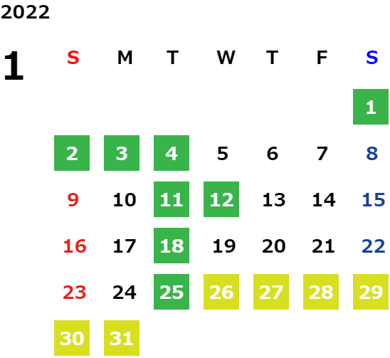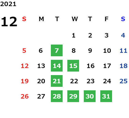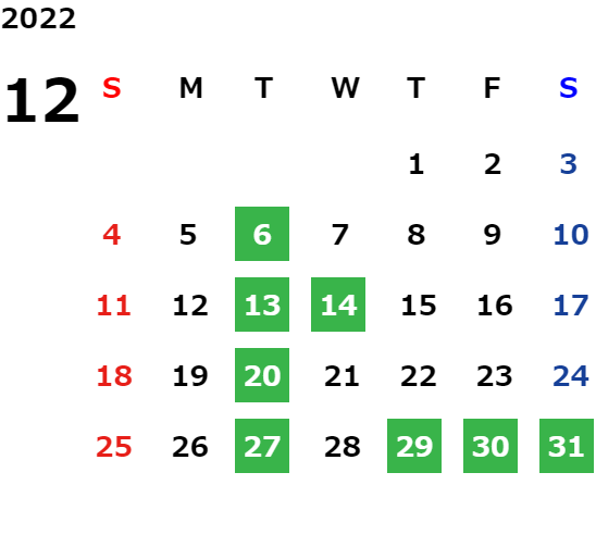 営業日カレンダー