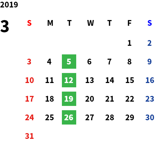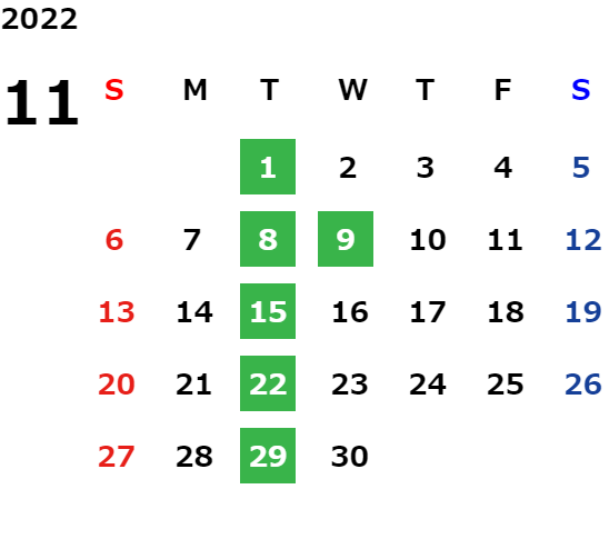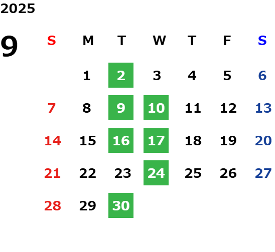 毎週火曜日(祝日の場合は翌日)および第2・第3火曜日の翌水曜日、