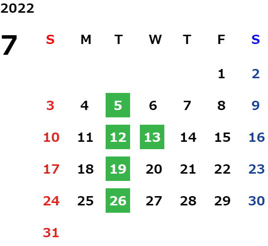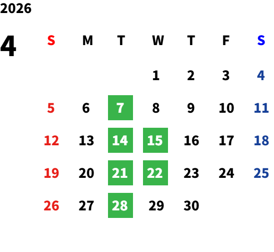 毎週火曜日(祝日の場合は翌日)および第2・第3火曜日の翌水曜日、