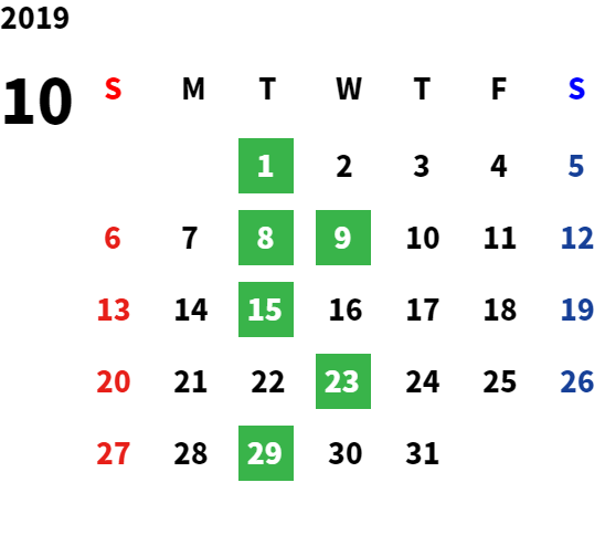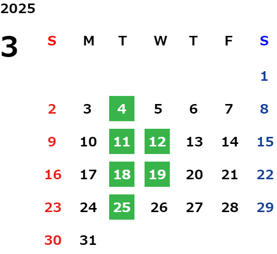 営業日カレンダー
