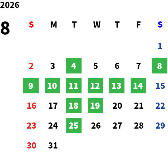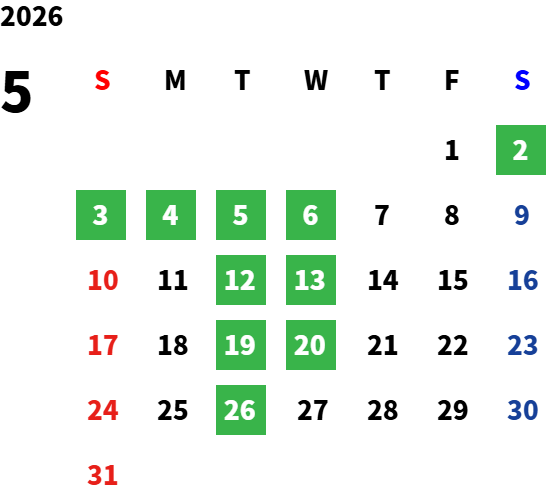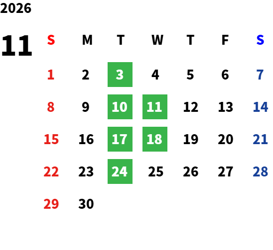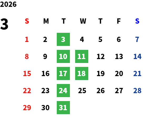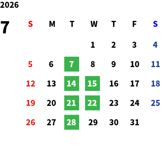 毎週火曜日(祝日の場合は翌日)および第2・第3火曜日の翌水曜日、